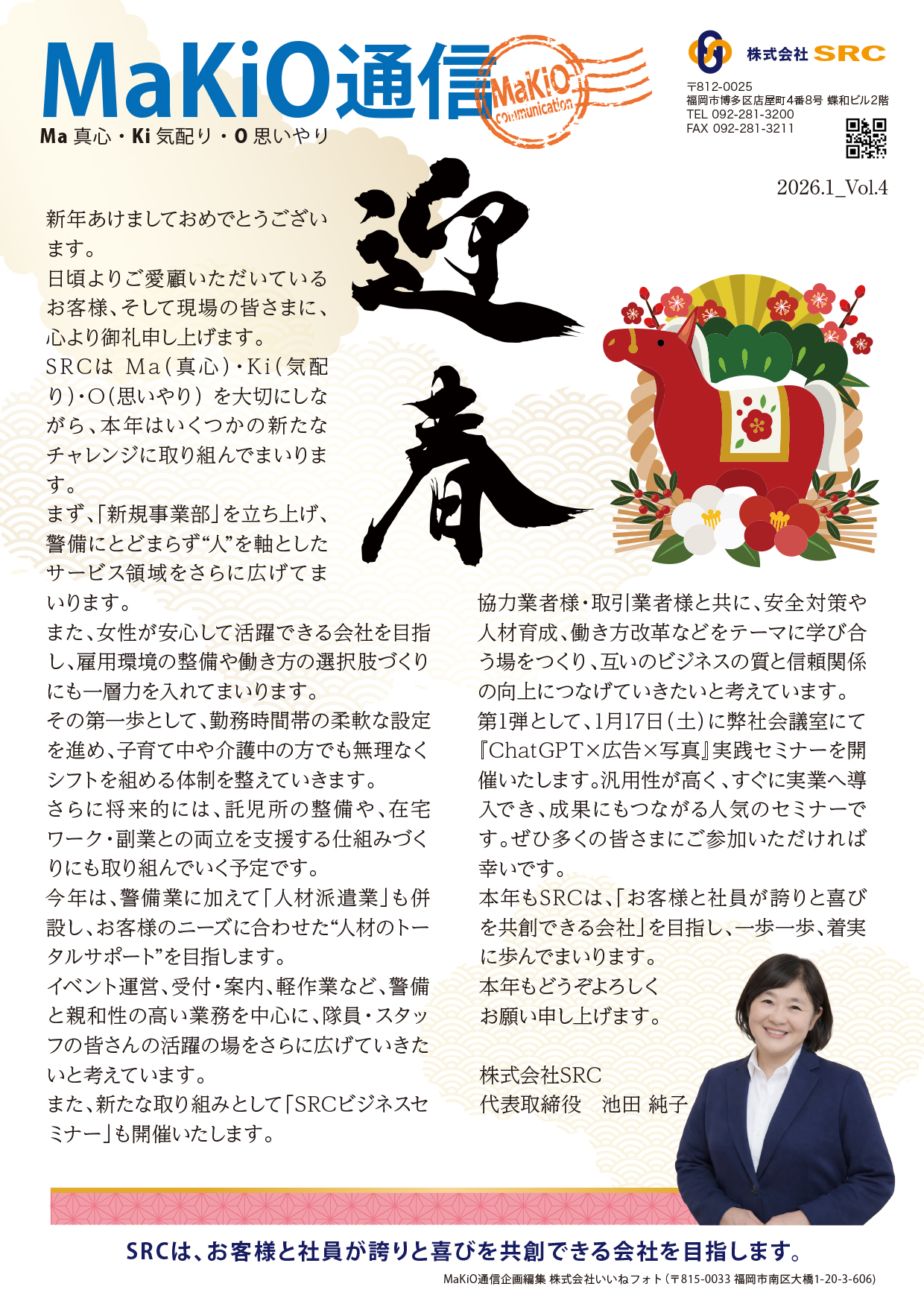今号では、新年のご挨拶とともに、2026年に向けたSRCの新たな取り組みについて