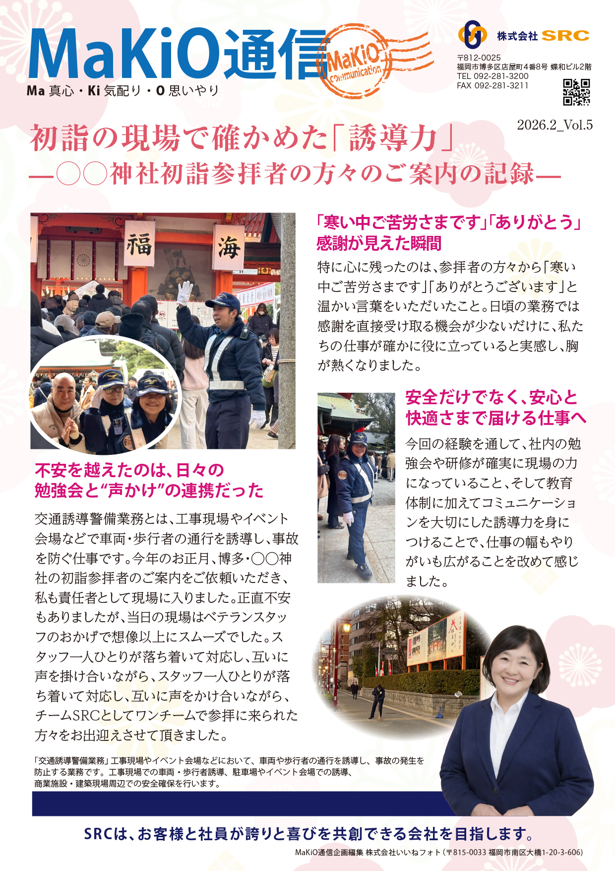 今号では、博多の神社における初詣参拝者のご案内業務の現場を通して、